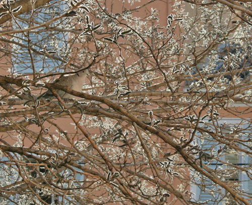 Il n'y a pas de tourterelle turque au Québec, mais des tourterelles tristes (Zenaida macroura), « mourning dove » en anglais. Il suffit d'entendre leur chant pour comprendre la raison de leur nom. J'en vois tous les jours devant chez moi sur les fils des poteaux électriques. J'aime beaucoup les oiseaux. En Europe, en mon jeune temps, je faisais beaucoup d'ornithologie.