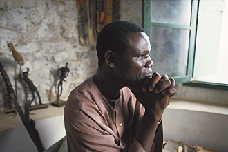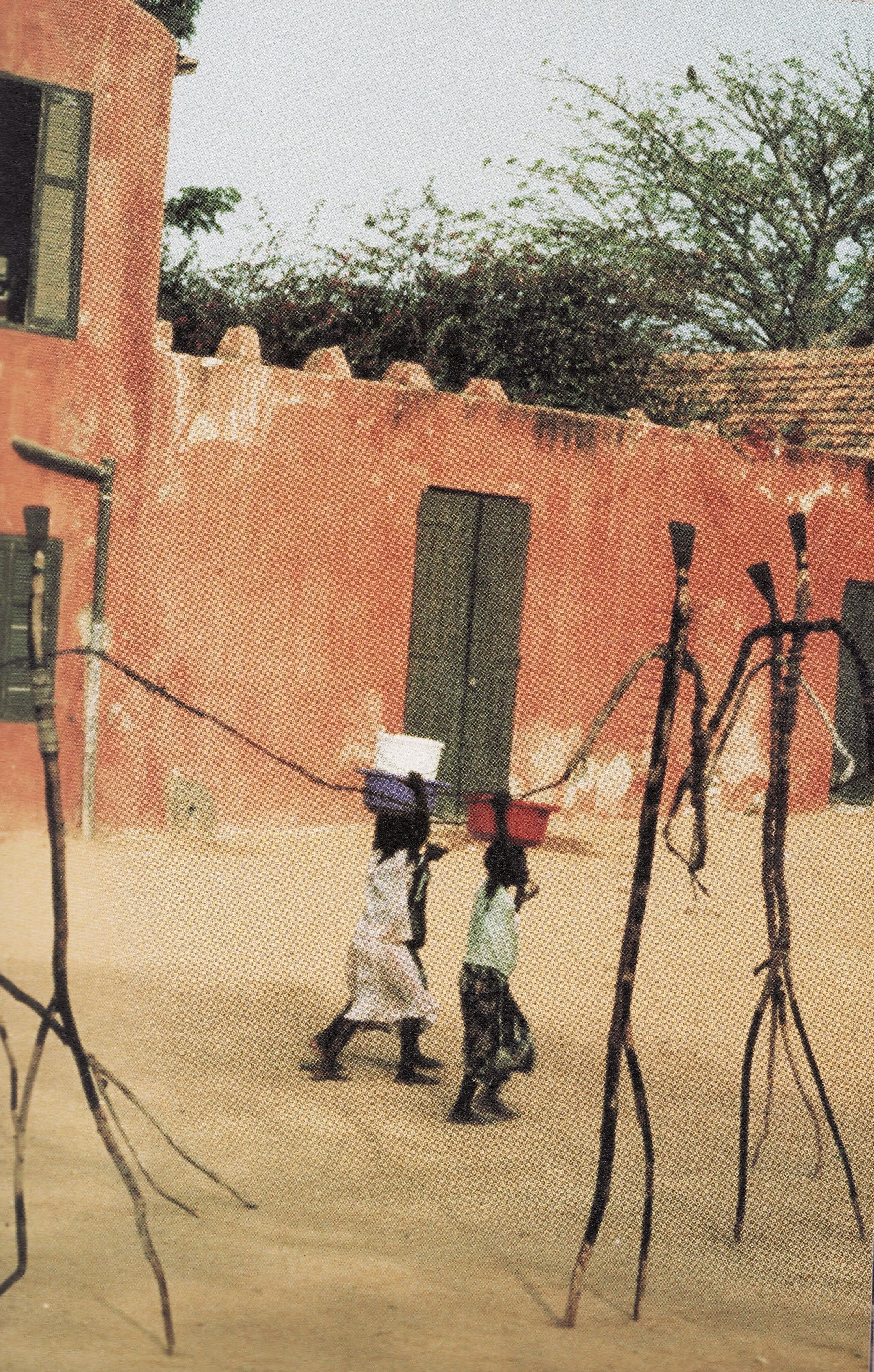 les salles closes ne lui conviennent pas ; c’est pourquoi j ‘ai mis la photo du fort de gorée , son atelier face à l’Atlantique , l’ouverture avec tout ce que cela suppose , une vue de tous les possible , concentré dans cette ile , qui est ce concentré de possible à l’horizon, au large des possibilités , un peu comme le corps humain , c’est si beau , merci encore
