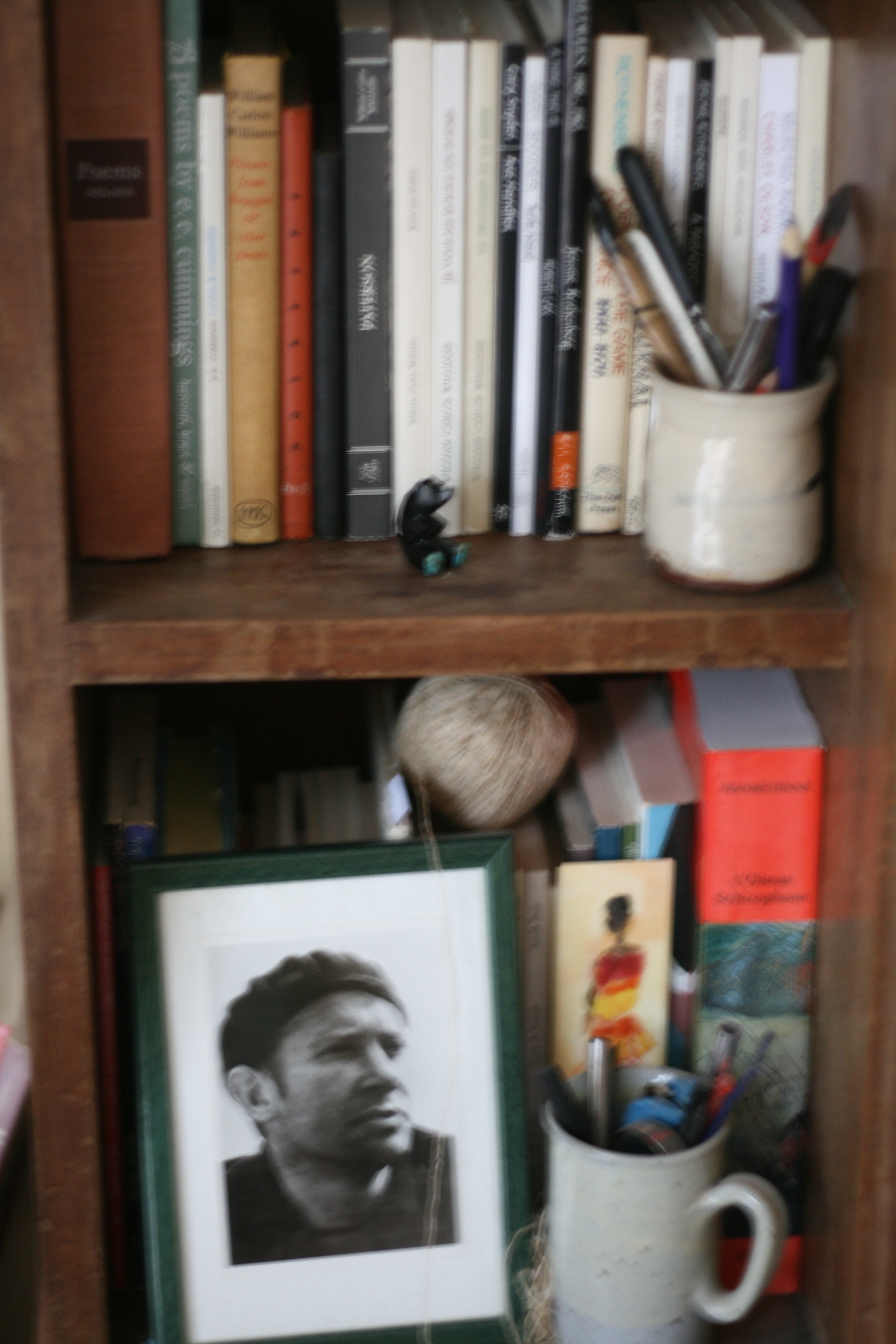 à la question du classement ; chez moi ; je procède affectivement ; je mets en valeur ce que j’aime , je rassemble les livres par affinités, passerelles entre des écrivains qui auraient du se rencontrer et qui en tout cas se rencontrent chez moi ; autre façon de faire , les grands thèmes dominants (voyage par exemple, poésie, grand lieu du Monde : la Caraïbe, l’Amérique indienne, la Gasconie, de grands thèmes de grand courant , bref j’essaye que la bibliothèque soit un organisme vivant, que je m’y reconnaisse quand je m’adresse à elle et que les livres la musique la peinture et les milles objets évadés évitent de s’ennuyer et de se perdre, de retourner d’où ils viennent, l’obscur de l’informe cerveau humain, desséché dans une tombe à n »en pas douter; maintenant ils voisinent et revendiquent une identité, mouvante elle peut changer; le hasard lui aussi peut jouer et battre les cartes, les redistribuer, l’apparence formelle aussi peut décider des destins par sympathie volubile ou antipathie ou tout simplement créolisation parce que c’est comme ça