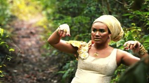 l’œil renonce, d’abord parce qu’il y a beaucoup trop d’or, que la femme semble sortir d’un monceau d’or elle-même, qu’elle sème au vent, jeu tactile de mots comme « s’aime » , l’or reste sur la peau comme une sensualité à fleur et la voix grave qui parsemée à la peau aime l’envie du monde, sa dure prégnance, on le verrait s’éparpiller et rejoindre l’âme des terres et du feu tapi si on prêtait attention mais comme on n’y prête pas attention on ne voit que le corps d’une femme parée d’or, l’or déjà de la peau, giclé du vert de la forêt et la plante, l’ocre du chemin, mais qu’éclaboussent les flaques de la boue tropicale et la voix recouvre le goudron le bruit mauvais et les tôles de la ville, sans qu’on y prenne garde, qu’on ne le chante, les troncs, entremêlés où hôtes les lichens et la mousse, caresse anthropophage du monde au monde là où le monde s’efface c’est l’esprit qui rit ou rage ou pleure, maladie, accouplement ou danse de joie du corps qui s’apprête de tout un vert , ce pourrait être cauris et plumes, chants et becs , cimes et ras des feuilles, tiges et or de la lumière , on ne sait plus rien de ce que l’on voit et c’est pour cela que dans ce chant se retrouve toutes la parure des profondeurs, venues d’où ?
