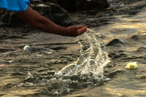 émise et comprise, passée au fil de l’eau même perfide comme le sont les profondeurs d’où jaillissent du ventre d’eau de Yemanja naissent les dieux et s’il semble usurper des formes douces contient le fluide de tout ce qui est humain