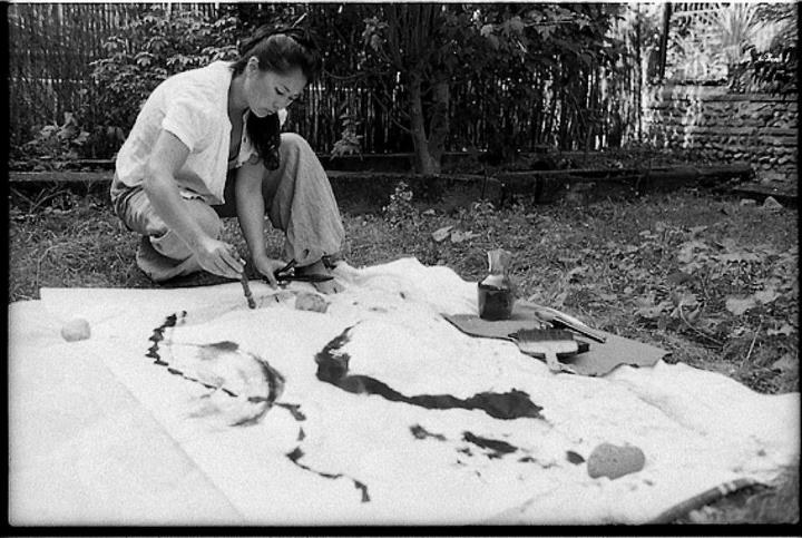 à genou je fais fondre la bâton d’encre, et je laisse cette eau me guider, reconnaissant mon espace comme une part intime du monde, que je laisse vide sur le papier.