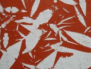 Mais est ce l’espace laissé blanc – l’emprise que le mouvement a laissé vif – et cru – que se mouvoir emprunt de blanc – est ce la trempe le frottement des herbes et l’inclination des eaux dans la couleur des ciels, y ont laissé ce rouge, un repos à poigne de bras le drap y a bu, imprégné des tracé dans ces sommets ou surgit le vital, la peau de bronze