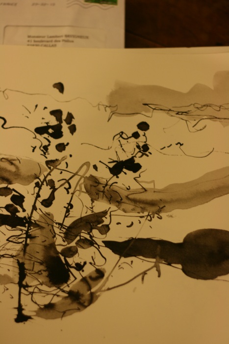 Sur un cahier je me moque contrefaisant les branches de l’arbre trop parfait puisqu’il existe