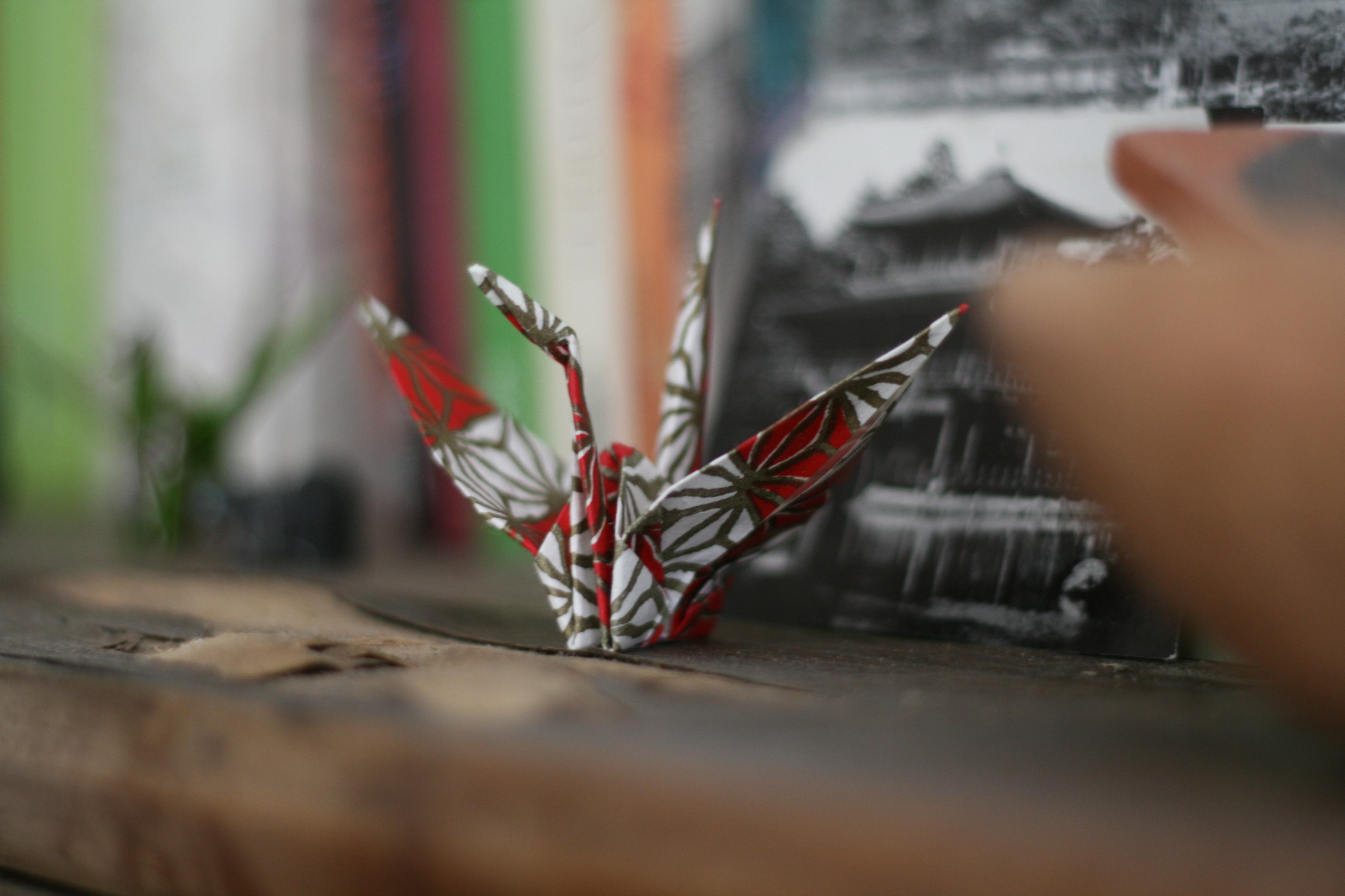 Comme du champagne, rêve si doux, nous deux dans l’avion, origami que j’ai mis près de Toshodaiji . Traduit de l’incertitude, j’ai peur de te voir partir .