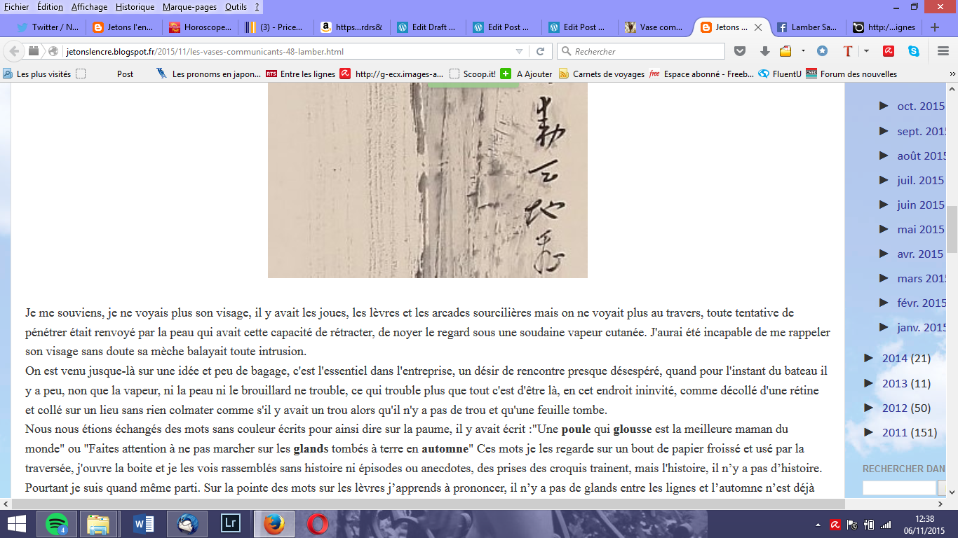 l’idée des vases communicants a été initiée par François Bon dont le but de se faire se rapprocher les écritures de nos blogs dans des échanges qui devaient sans doute créer une émulation et un foisonnement encore plus grand, car les blogs sont isolés.