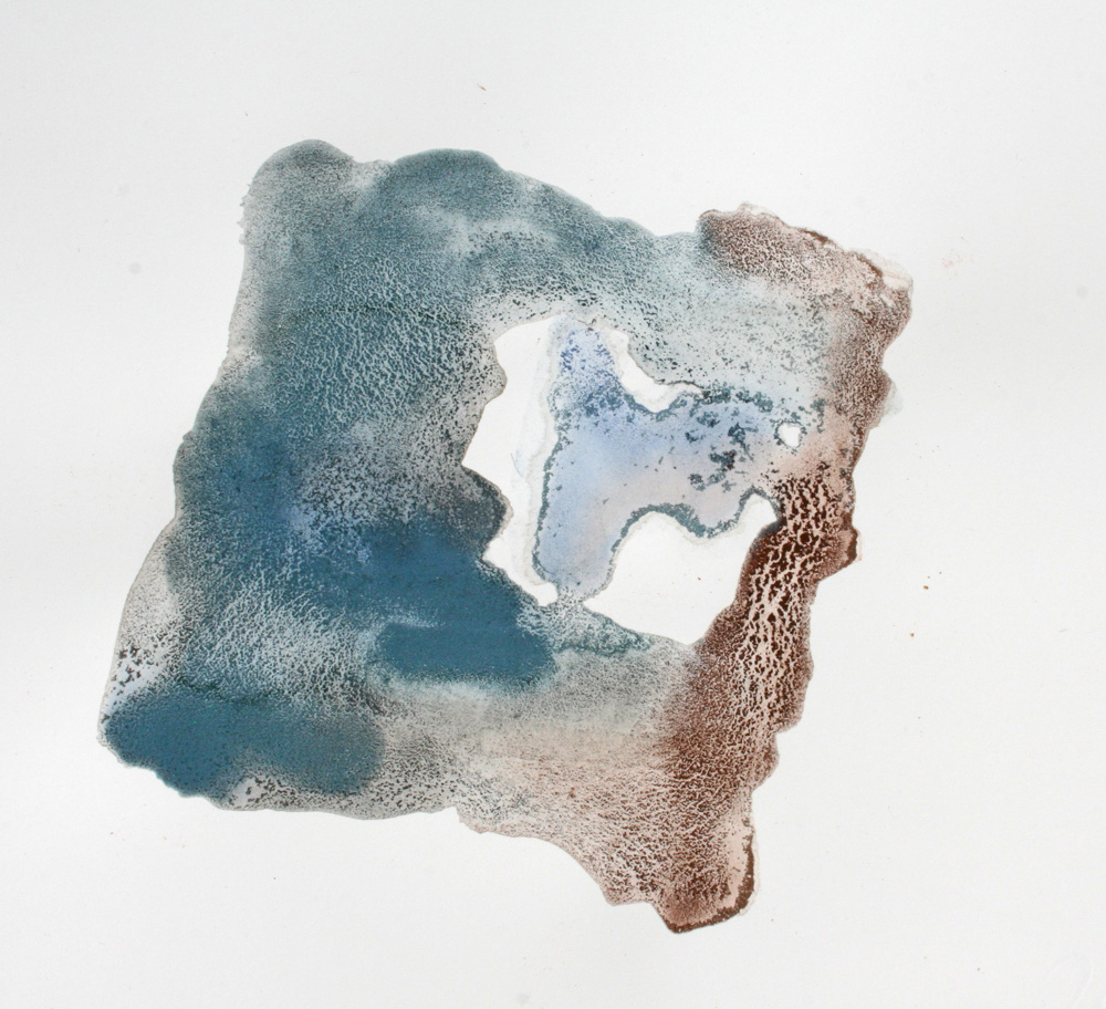 L’utilisation des pigments afin de donner une plus grande pureté à la matière prend toute sa mesure avec l’utilisation de l’eau qui permet de créer des espaces sensibles. Le thème de l’Océan et de l’île est bien sur à l’honneur et la luminosité demande au peintre un retrait et une retenue.