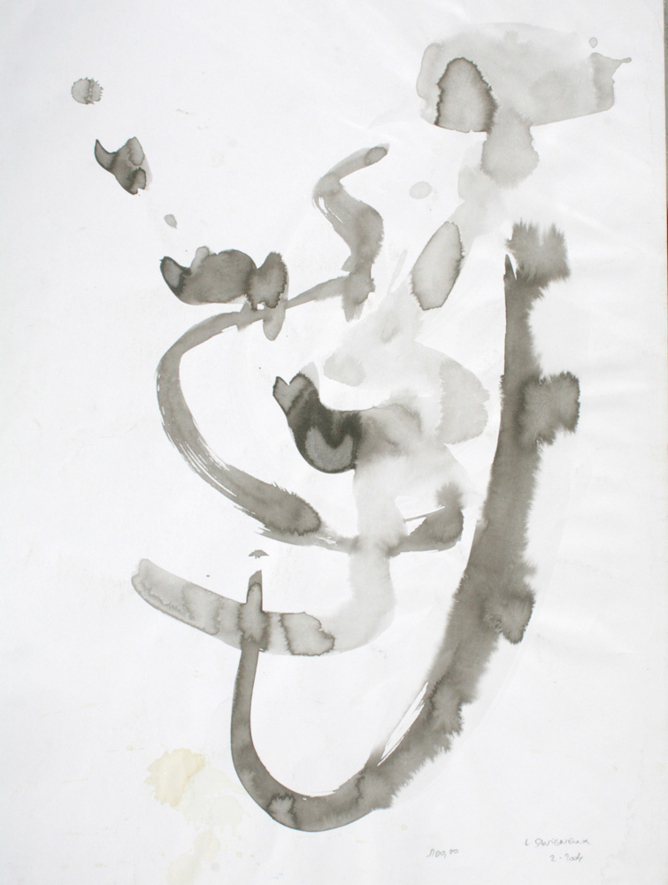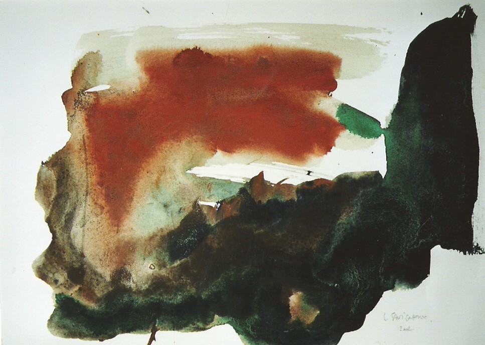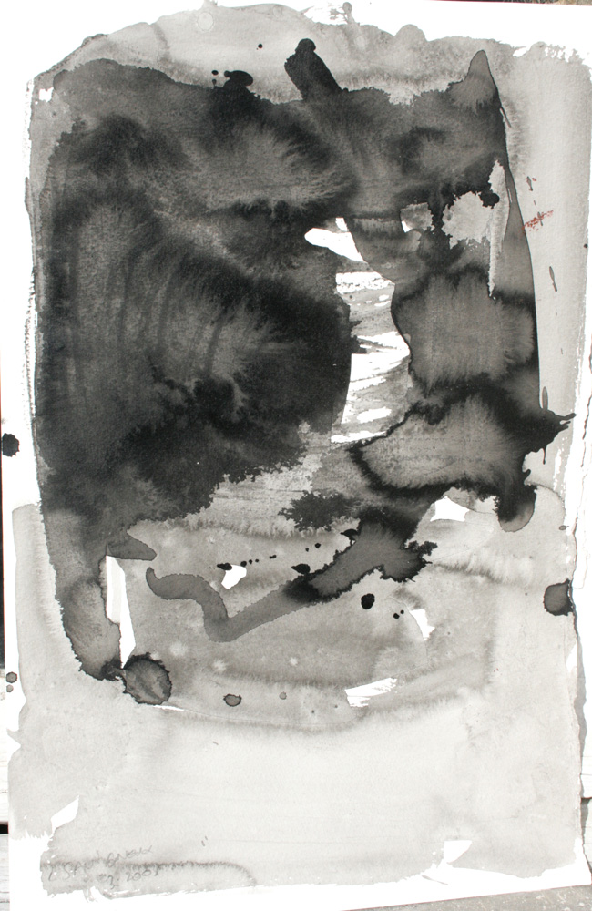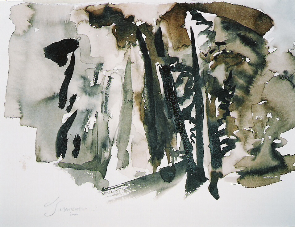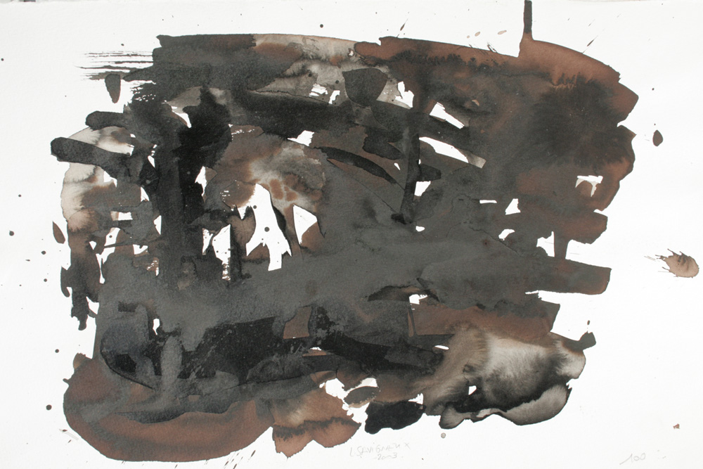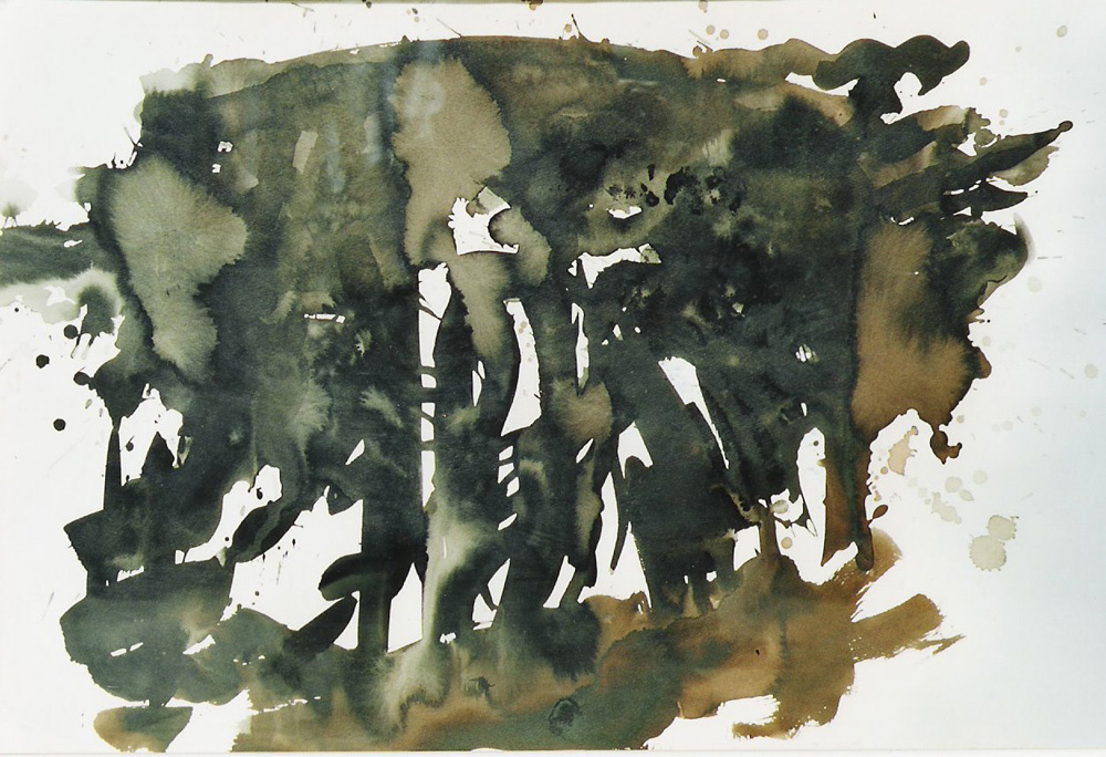 Ces encres sont directement inspiré d’un motif de montagne réel et cherche à faire s’approcher la proximité dans une présence qui fait se lever la clarté autour du signe, la masse et le sens expressif. Le souvenir du thème majeur de la forme signifiante (BH) se rappelle à nous et permet d’établir un lien entre le sens profond de la ligne de la couleur et du vide dans la perception du motif. C’est ce que j’appelle présence