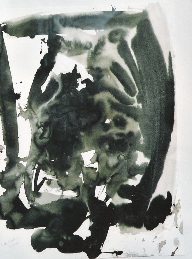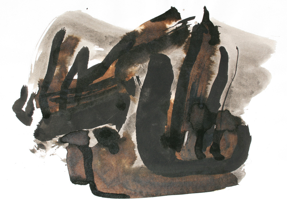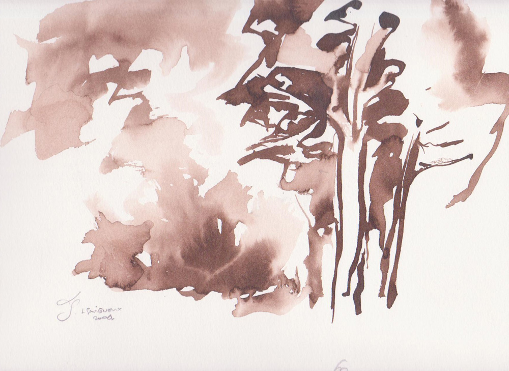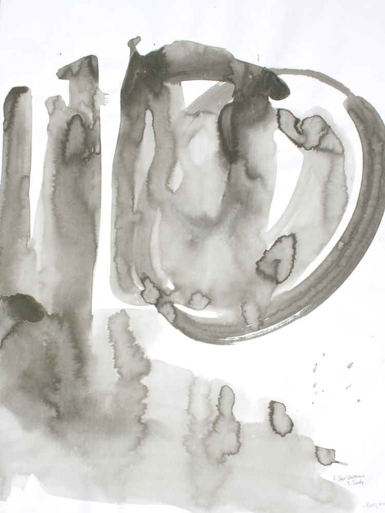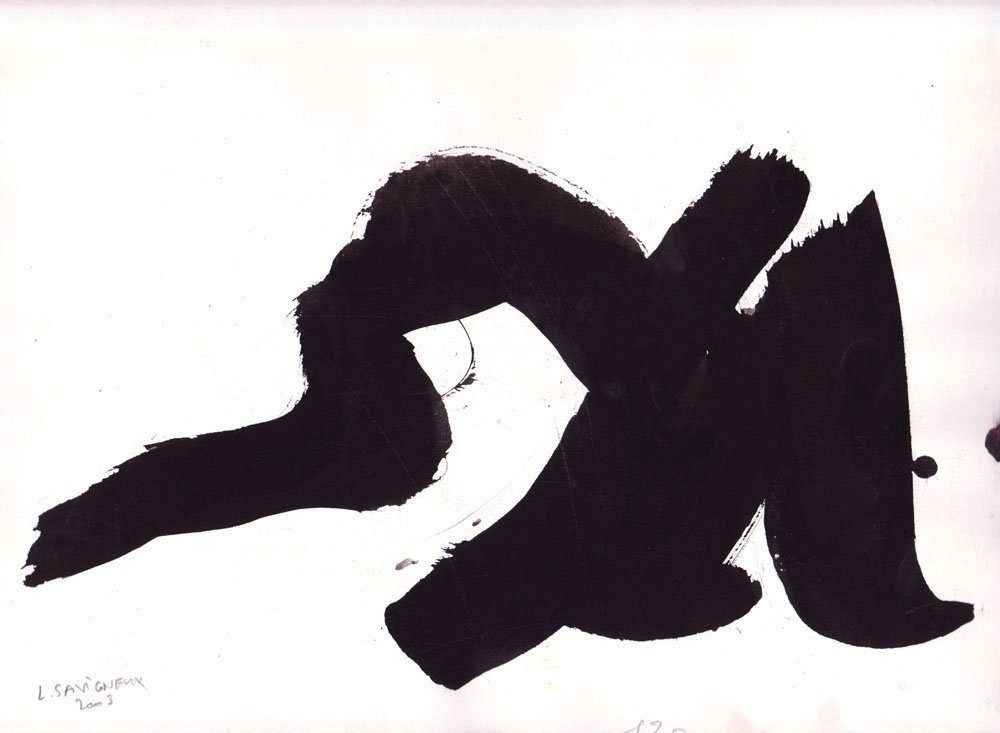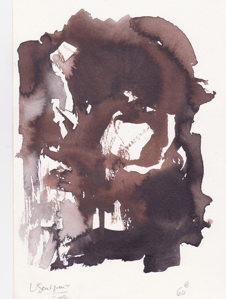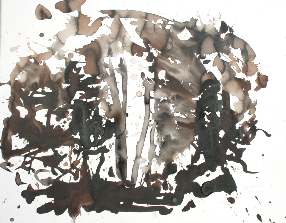 La fascination pour l’encre chinoise mais aussi pour les estampes de Soulages et tout le travail accomplit par les peintres du vingtième siècle sur le signe et l’expressivité, l’écriture, le leg de la calligraphie orientale à l’art mais aussi la sculpture et l’idée de la forme . Mais cela n’est pas si facile car il ne s’agit pas de contrefaire ou de refaire mais de laisser s’exprimer dans ces techniques. Tel est mon credo, l’authenticité et l’expression de ce qui vit tapi en soi et qui suivant des fils trouve une forme et se développe.