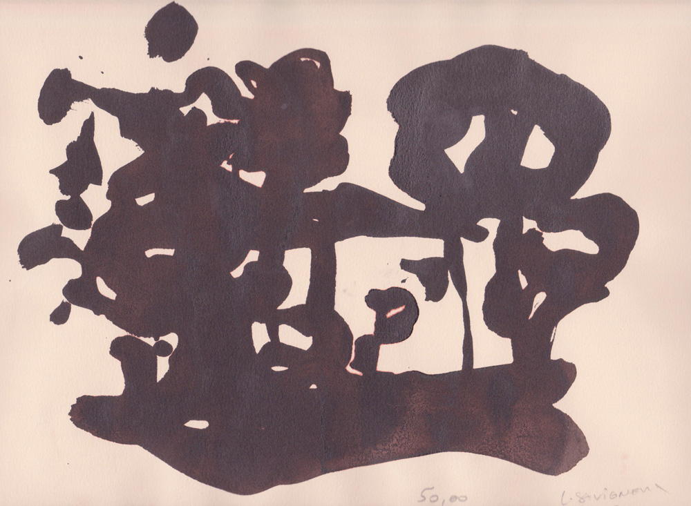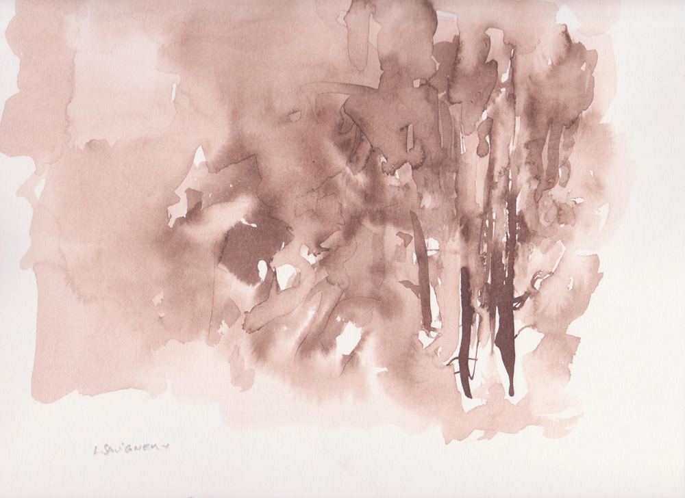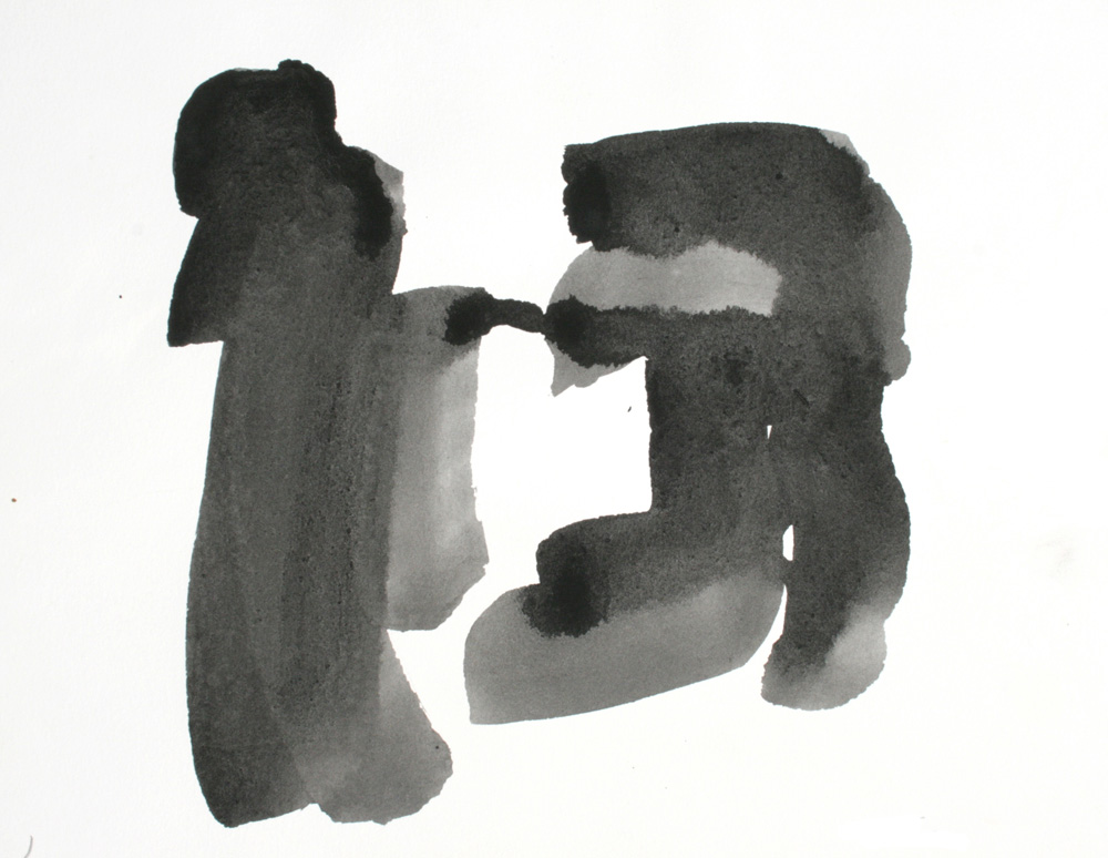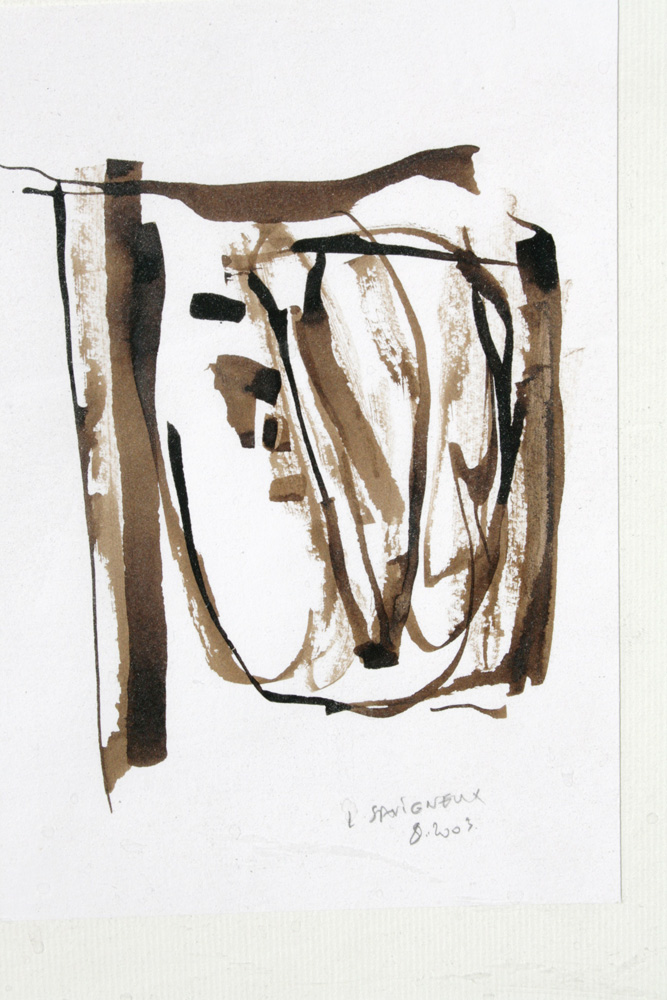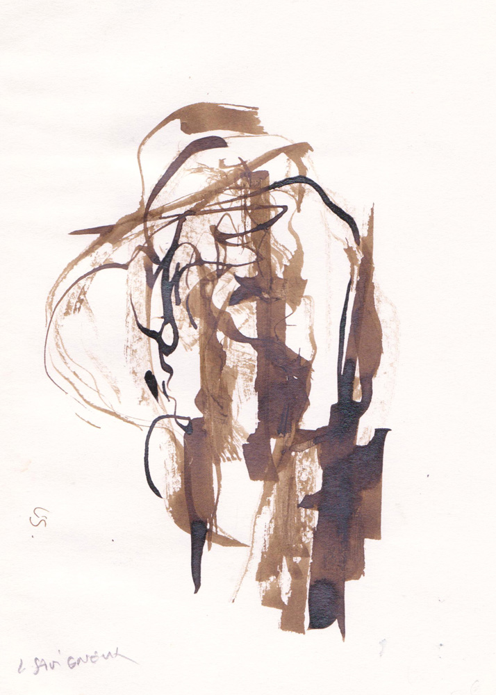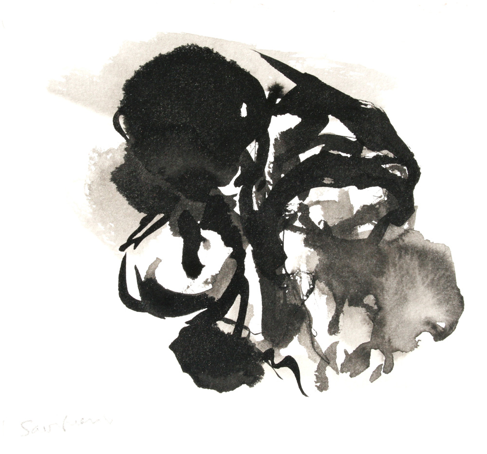 La fascination pour l’encre chinoise mais aussi pour les estampes de Soulages et tout le travail accomplit par les peintres du vingtième siècle sur le signe et l’expressivité, l’écriture, le leg de la calligraphie orientale à l’art mais aussi la sculpture et l’idée de la forme . Mais cela n’est pas si facile car il ne s’agit pas de contrefaire ou de refaire mais de laisser s’exprimer dans ces techniques. Tel est mon credo, l’authenticité et l’expression de ce qui vit tapi en soi et qui suivant des fils trouve une forme et se développe.