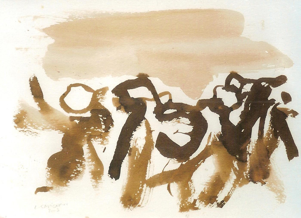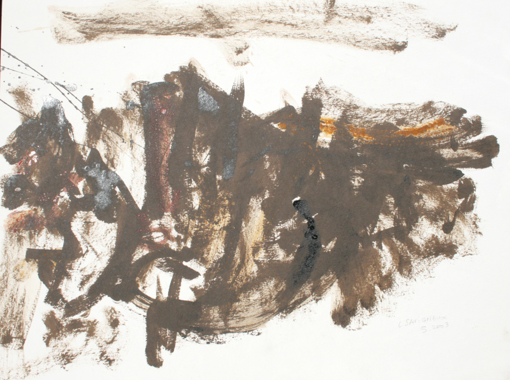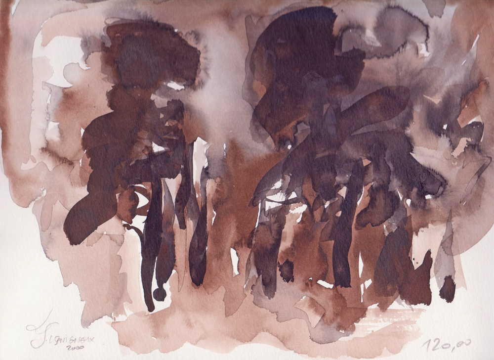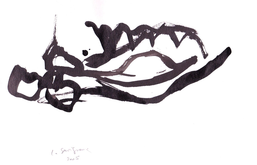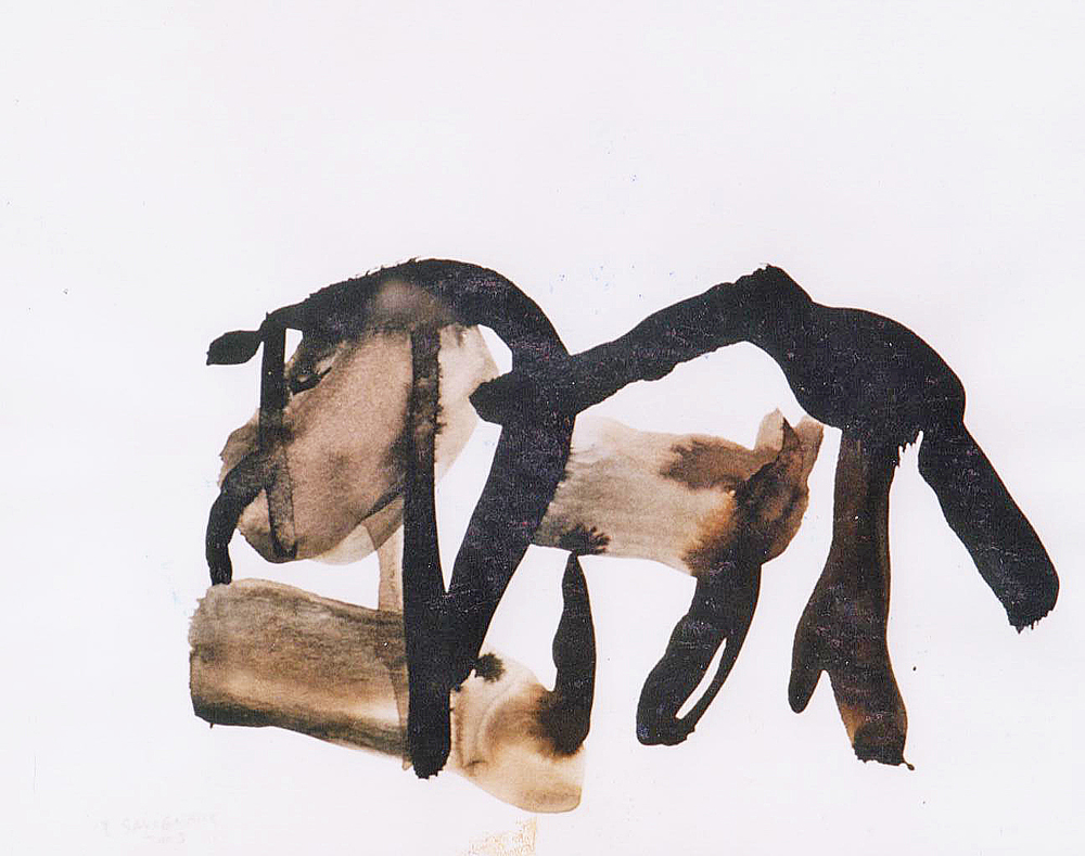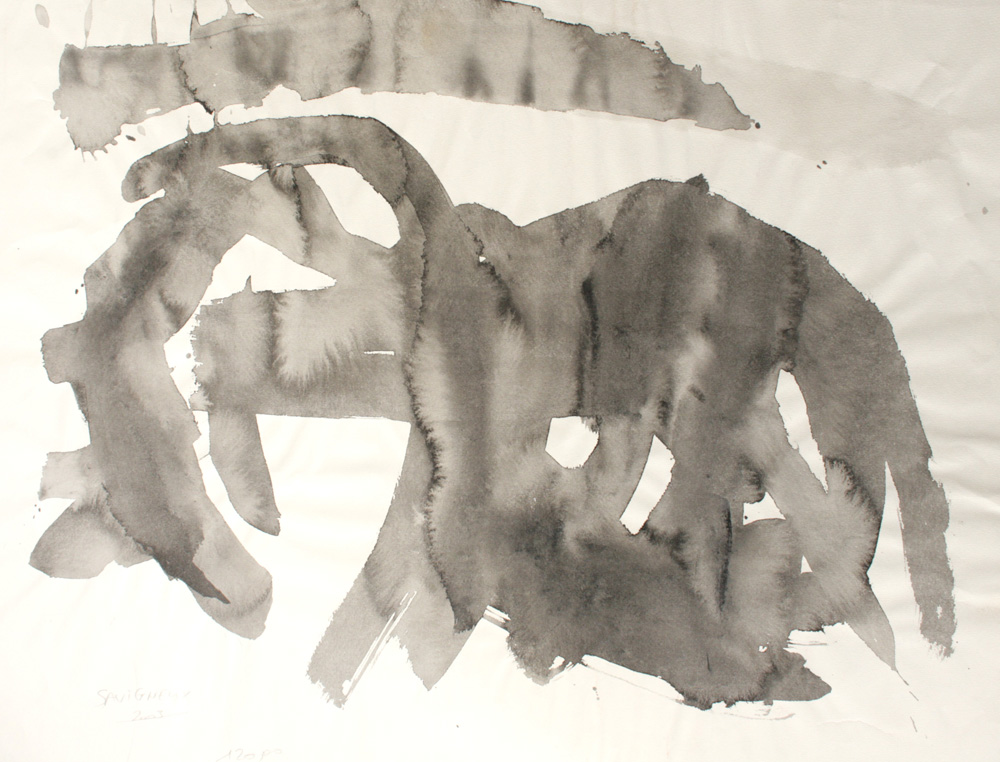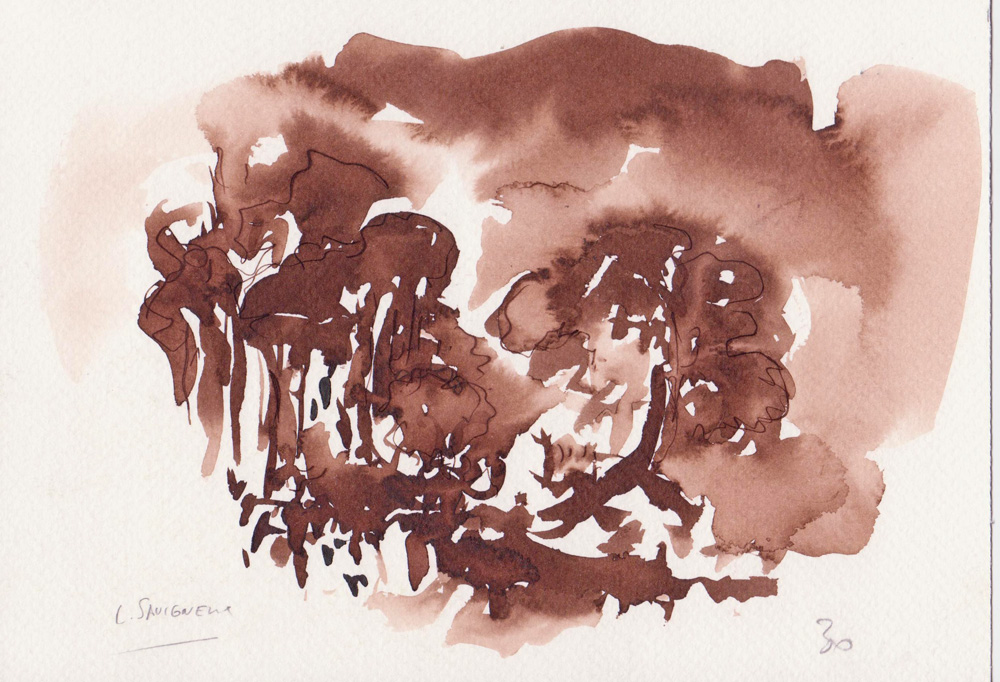 La fascination pour l’encre chinoise mais aussi pour les estampes de Soulages et tout le travail accomplit par les peintres du vingtième siècle sur le signe et l’expressivité, l’écriture, le leg de la calligraphie orientale à l’art mais aussi la sculpture et l’idée de la forme . Mais cela n’est pas si facile car il ne s’agit pas de contrefaire ou de refaire mais de laisser s’exprimer dans ces techniques. Tel est mon credo, l’authenticité et l’expression de ce qui vit tapi en soi et qui suivant des fils trouve une forme et se développe.