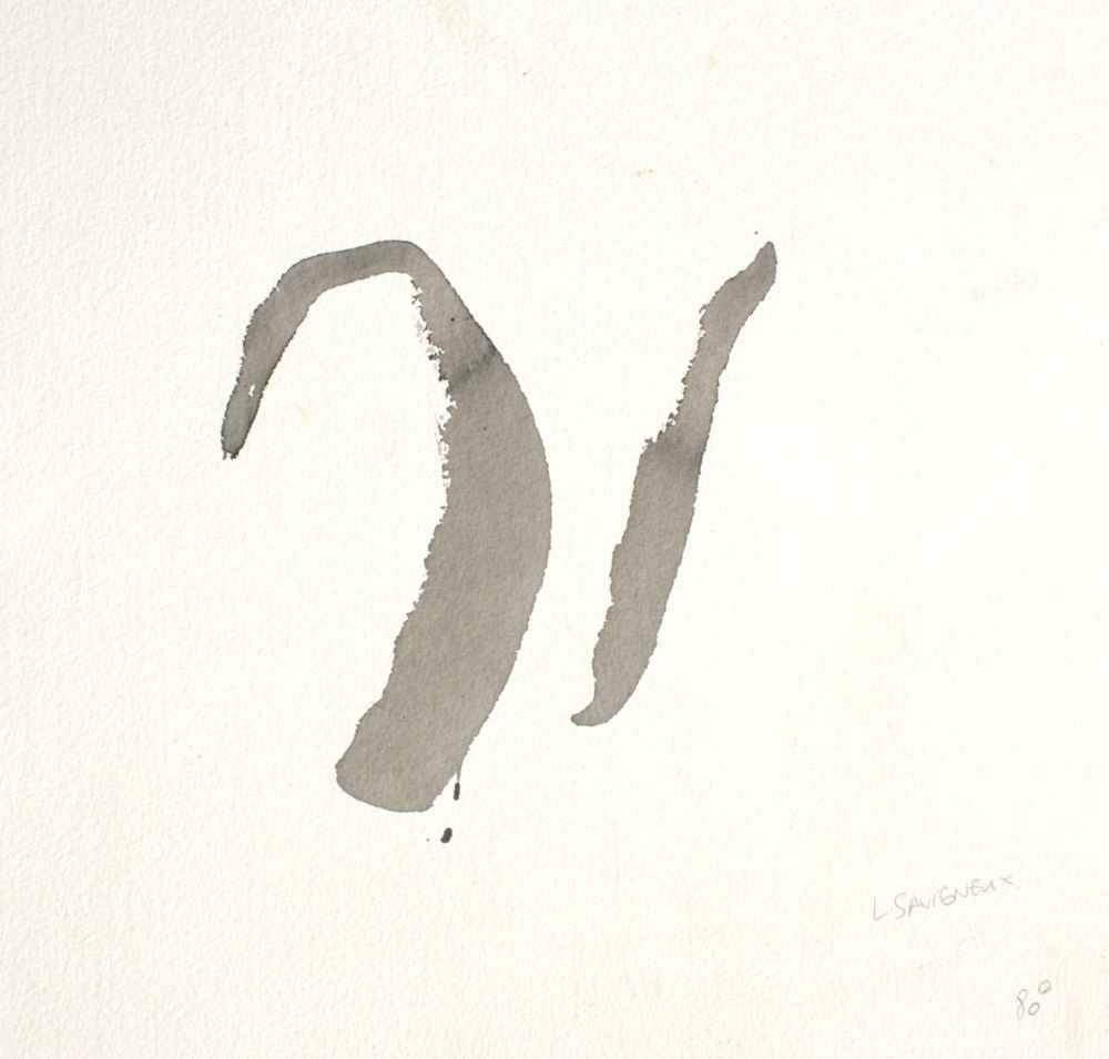 De façon extrêmement épuré le signe pour atteindre à l’universel et au signifiant se débarrasse de toute anecdote sans perdre de sa chair.