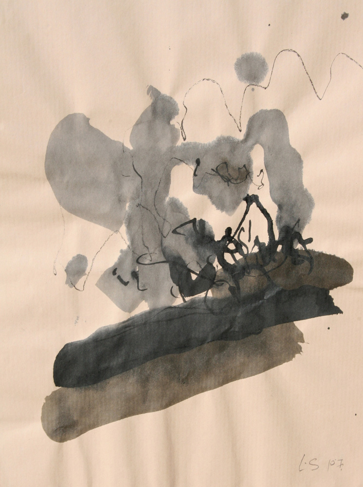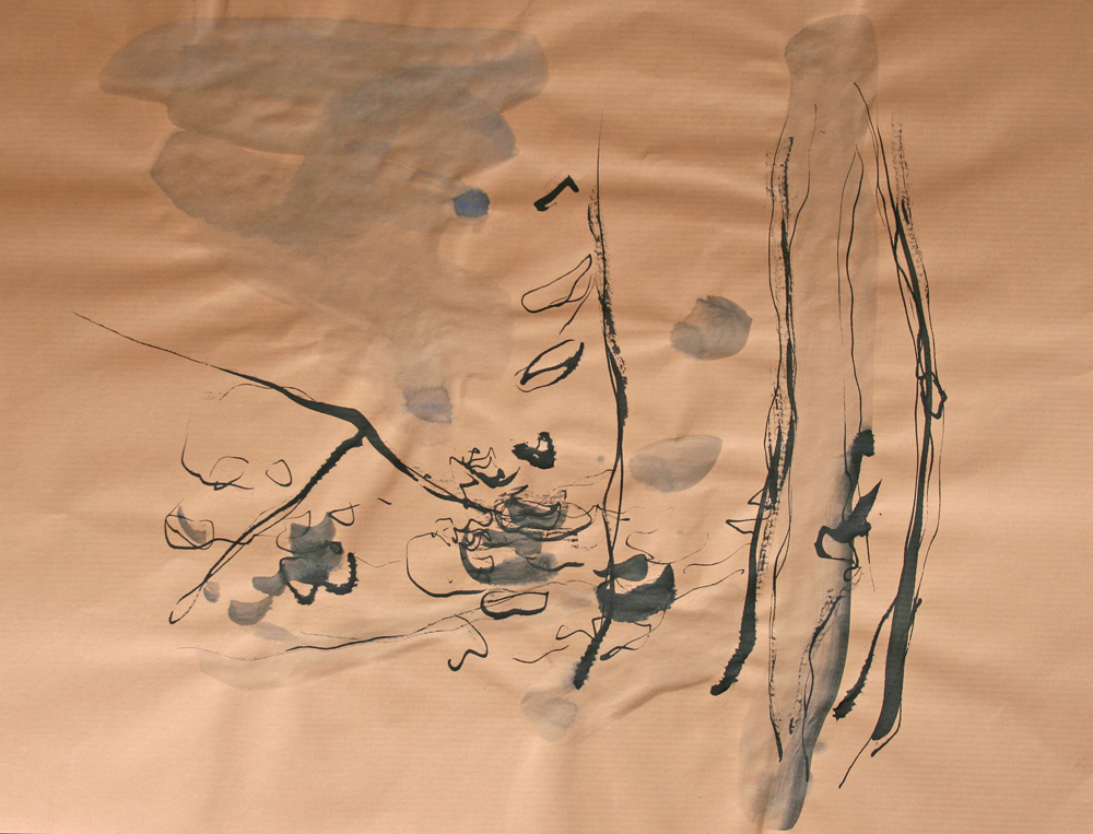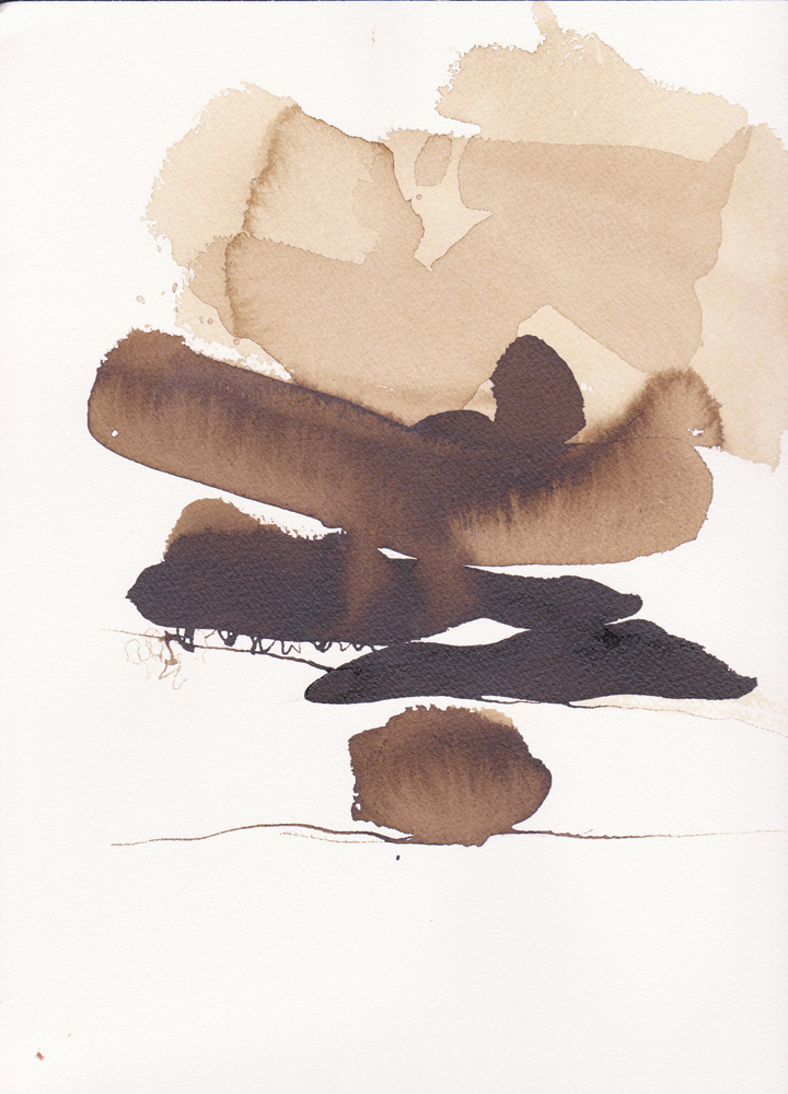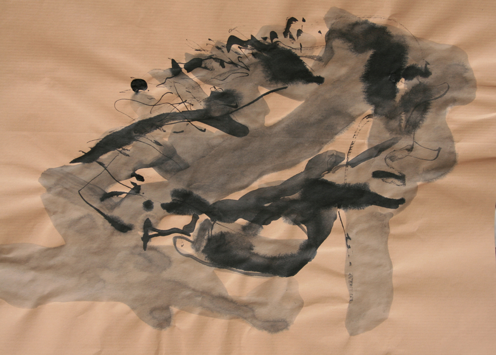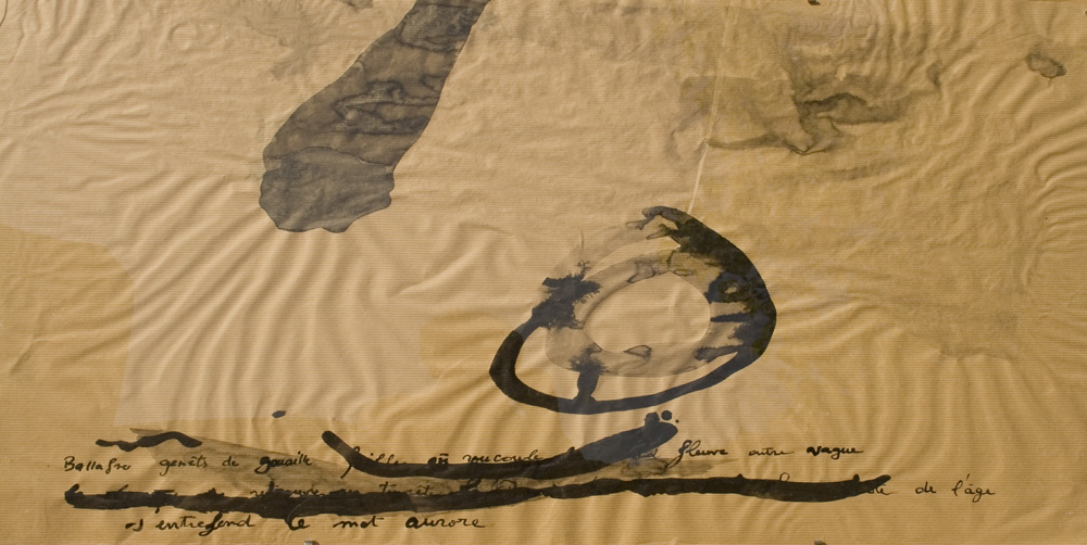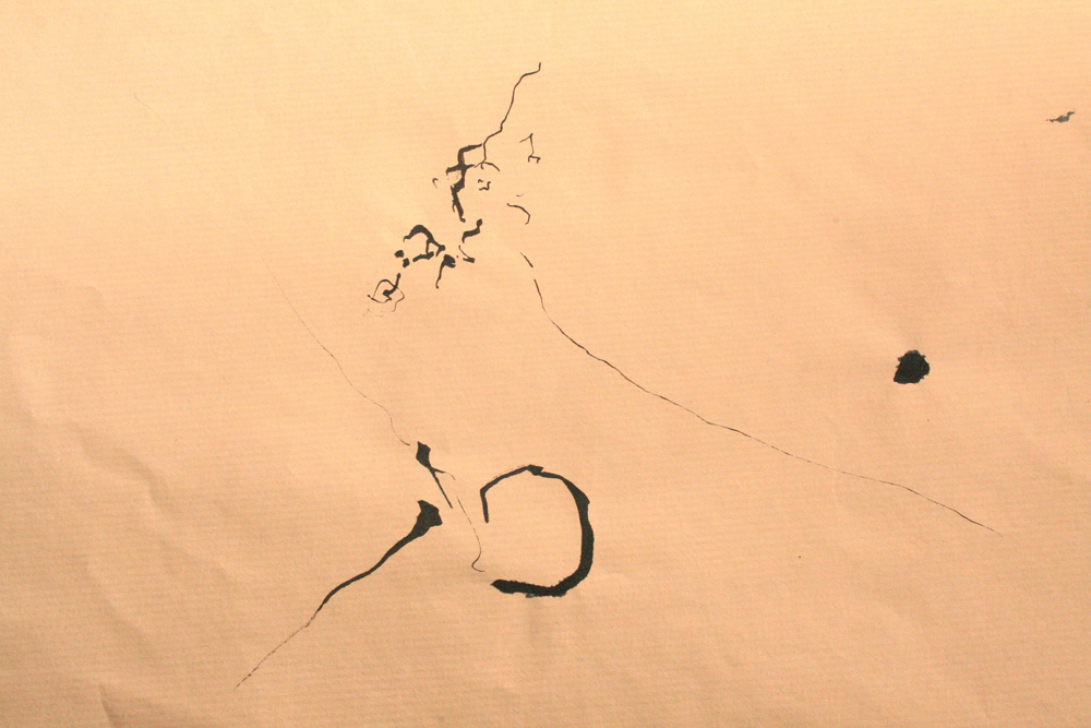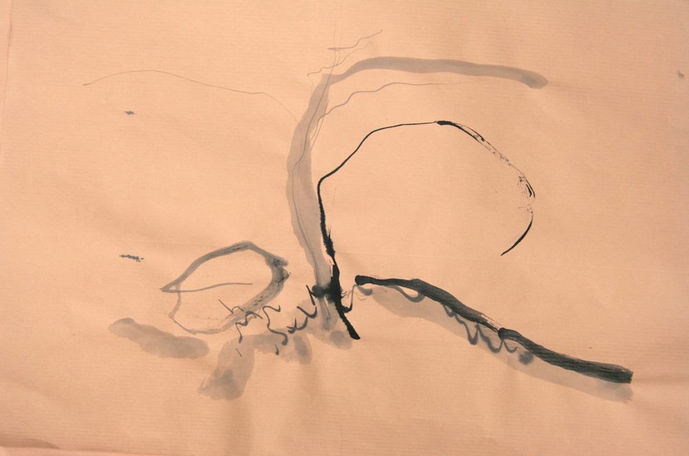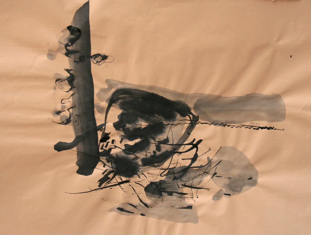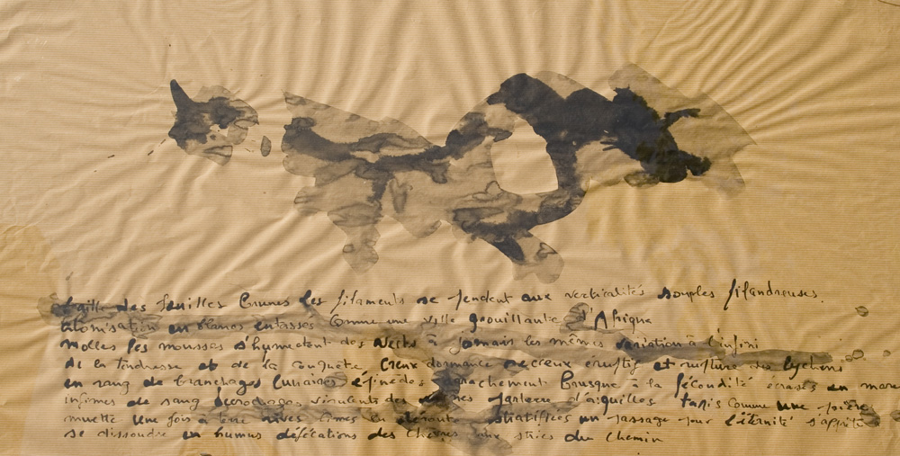 Se mettre à dessiner sur le papier ce qui grouille, les bouts de bambou appelés calames se chargent d’écrire sans préméditation ce qui voyage dans la lumière ou tout un monde se hâte sur le sol. Au pieds d’un arbre ou sur les mousses et les aiguilles de pin, plus qu’une observation, tracer les signes d’une nature de l’infime. prémices du mythe si le regard et la sensation se détourne de l’horizon et se fient à un autre récit, plastique et littéraire.