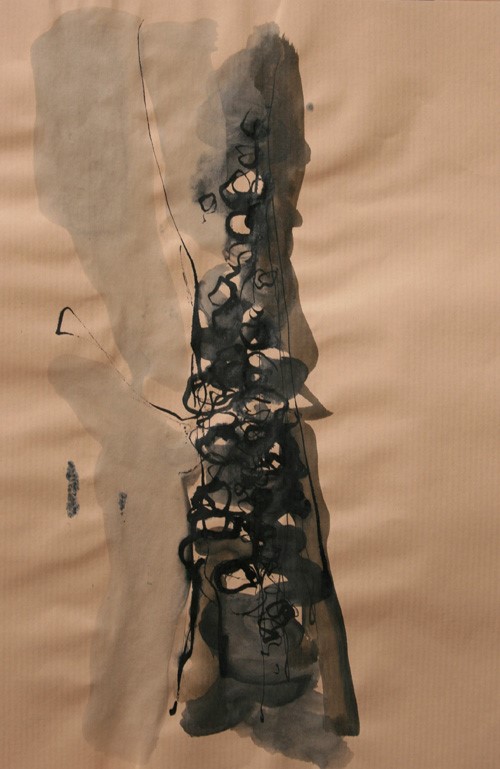 Se mettre à dessiner sur le papier ce qui grouille, les bouts de bambou appelés calames se chargent d’écrire sans préméditation ce qui voyage dans la lumière ou tout un monde se hâte sur le sol. Au pieds d’un arbre ou sur les mousses et les aiguilles de pin, plus qu’une observation, tracer les signes d’une nature de l’infime. prémices du mythe si le regard et la sensation se détourne de l’horizon et se fient à un autre récit, plastique et littéraire.