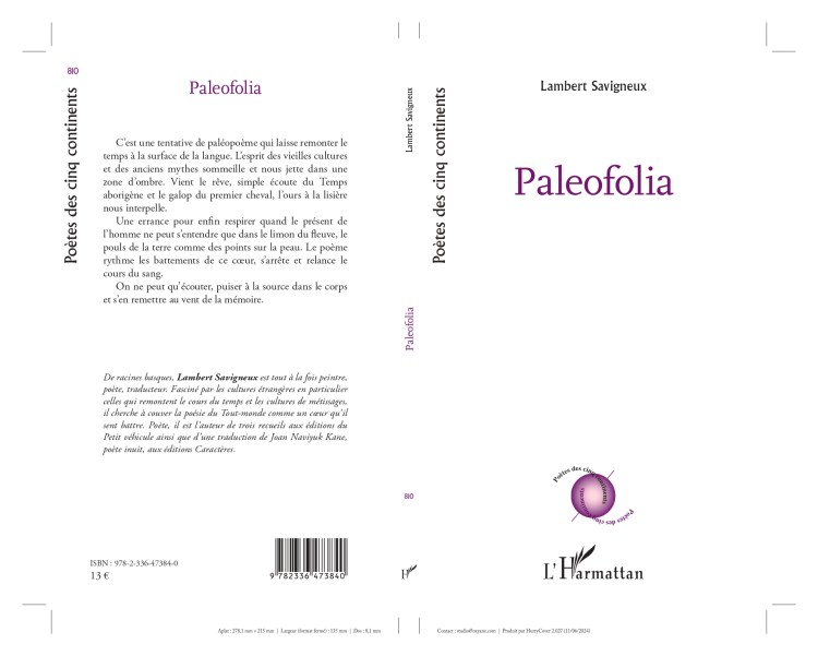 Ce projet fait désormais l’objet d’une publication aux éditions l’Harmattan sous le titre Paleofolia coll. Poètes des cinq continents, L’Harmattan 2024