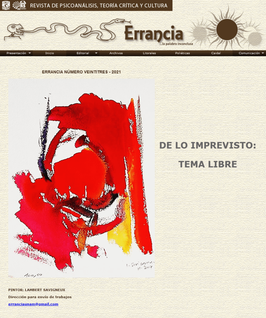 Revue « Errancia, la palabra inconclusa n° 23 (UNAM)