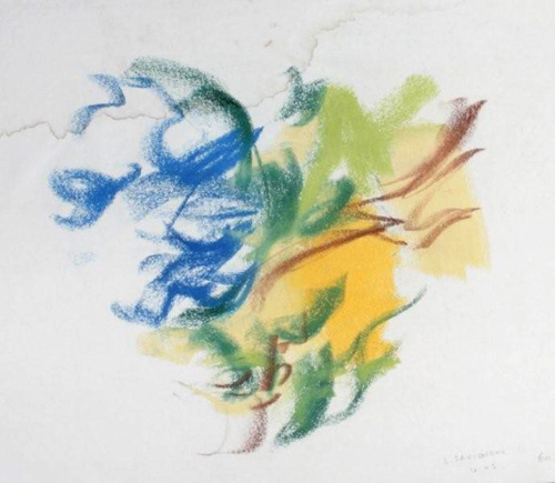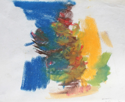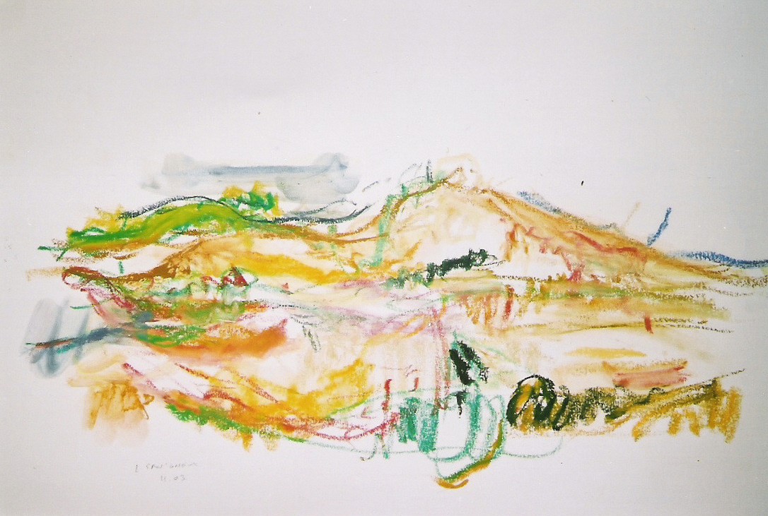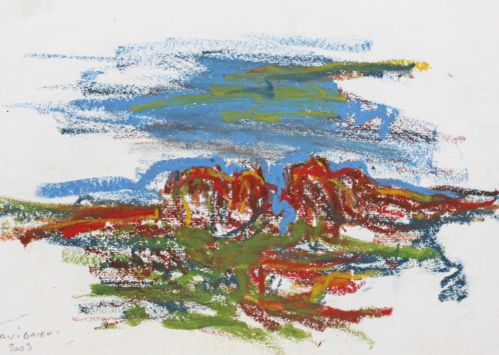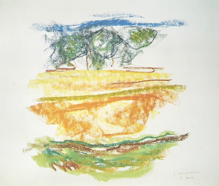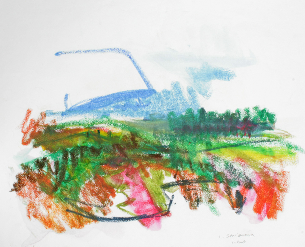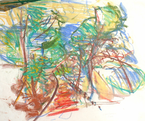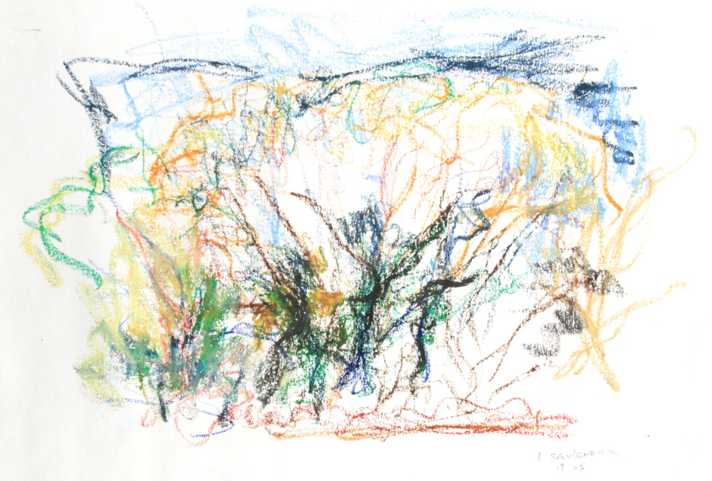 C’est le rythme et la dynamique fébrile du pastel comme une écriture du vivant comme pressé de devenir ou de pousser à ses limites. Pastel gras et pastel sec sont jouissif dans leur utilisation et permettent au geste d’imprégner le papier de leur élan. Pour moi depuis le début, le thème de l’entour et de la poussée dans l’espace ont été primordiaux, à la façon d’un raga qui au fil du temps s’étoffe. Le souvenir passionné de deux grands maîtres admirés aux Etat Unis lors de mon séjour à Yale, Mark Rothko et Joan Mitchell a cristallisé leur empreinte sur ma réflexion. Mais cette peinture est une pratique du grand air et n’a rien de la distance de l’atelier, au contraire, ici le réel dicte directement les impressions comme la lumière.
